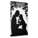 "HAPPY MOTHER'S DAY" BLACK SILHOUETTE OF A LITTLE GIRL HANDING HER MOTHER A FLOWER
