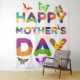 Happy Mother's Day decorative text-image against the white background. Six colourful butterflies float around the image or sit on a letter. A customisable tapestry to decorate your place and celebrate Mother's Day, birthday, or any other occasion. You can change butterflies and place some photos instead of them. Please, use the "Personalise" button to change the size of the text-image, to relocate butterflies, or to change the colour of the background. Have fun, customise and buy one, and be happy!