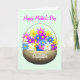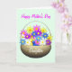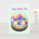 Card with my original image of a pretty basket of flowers and a little blue bird for Mother's Day. Text says "Happy Mother's Day Daughter". Verse inside.