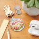 Description give mom a beautiful reminder of your love that she can carry every day elegant double sided keychain features a stunning wreath of pink roses and daisies on a sophisticated teal background with the vibrant happy Mother's Day design visible from both sides. It's a stylish and practical accessory for her keys