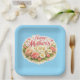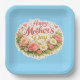 Happy Mother's Day elegant floral wreath blue Paper Plate