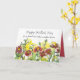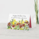 Happy Mother's Day greetings for a person who's like a mom to you decorated with a colorful garden of red zinnias and white wildflowers accented with spatter spots hand drawn with ink and painted with watercolor. On the inside is a shade of warm red with text you can edit to fit your needs.
