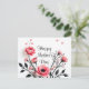 A beautifully designed Mother's Day card featuring vibrant pink flowers and delicate hearts. The floral arrangement is intricately detailed, with a mix of blossoms and leaves, creating a lush, inviting appearance, The text 'Happy Mother's Day.