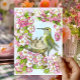 Mother hummingbird at the nest with two chicks surrounded by pink cherry blossoms, honey bees, and ladybug. Inside verse and greeting fully customizable. Suitable for mother, grandmother, sister, aunt, daughter , or "like a mother" recipients. Interior and back of the card in coordinating pink. Original watercolor painting by Lillian Egleston.
