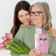 Happy Mother's Day MOM Modern Pink Heart Photo Mother's Day Cards features your favourite photo in a heart shape with the text "Happy Mother's Day Mum" in modern calligraphy script. Add your personalised message on the inside with an additional photo. Personalise by editing the text in the text box provided and adding your own picture. Designed by ©2024 Evco Studio www.zazzle.com/store/evcostudio