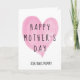 A pretty happy mother's day card for mummy featuring a pink watercolor heart on the front. You'll be able to easily personalise the front with the child's name along with mummy, mum, etc. Inside reads a sweet message for mum, which you can can also personalise. The back features the same pretty pink heart along with the year, which you can also personalise if wanted. This makes a great Mother's Day keepsake.