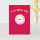 Happy Mother's Day card with a beautiful sunflower with multicolored pastel shades and the word MOM at the centre on a red background with magenta heart pattern.