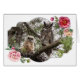A sweet image of a great horned owl mum with her nestling. Set off by a flowered border.