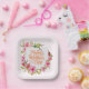 These elegant square paper plates are perfect for celebrating the amazing mom in your life. Featuring a beautiful watercolor floral wreath design in soft pink hues and lush green leaves, the plates prominently display the message "Happy Mother's Day" in the center.