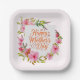 Happy Mother's Day Pink Floral Wreath Square Paper Plates
