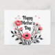A beautifully designed card featuring vibrant pink flowers and delicate leaves. The flowers are artistically layered, creating a three-dimensional effect. The text "Happy Mother's Day"