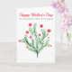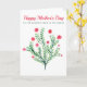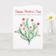 Mother's Day card with an ink and watercolor drawing of an abstract spring flower in pink and green over customizable white background. This elegant mom card features the customizable text "Happy Mother's Day to the greatest mom in the world".