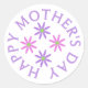 These stickers have Pretty pink and purple flowers surrounded by the words Happy Mothers Day.