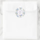 Small round happy Mother's Day sticker is shown with a lovely blue and purple floral print.
