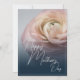 Close-up of pink rose on blue background and Mother's Day greetings. The rest of the card is free to design.
