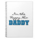 Blue and black text I'm the Happy New Daddy keepsake boxes, tiles, notebooks, ornaments, mousepads, mugs, buttons, cards, stickers, bags, keychains, and other new dad clothing and gifts that are great for announcing the new arrival!