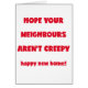 NewParkLane - Greeting Card, with funny quote: "Hope your neighbours aren't creepy - Happy New Home!" in a fun, modern red typography.