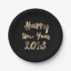 Happy New Year 2018 Black and Gold Look Typography Paper Plate