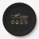 Happy New Year 2018 Elegant Black Gold Typography Paper Plate