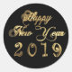 Happy New Year 2019 Black and Gold Script Classic Round Sticker
