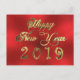 Happy New Year 2019 Script Red and Gold Chic Postcard