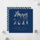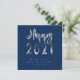 Happy New Year 2021 Chic Blue Silver Grey Script Holiday Card