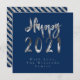 Happy New Year 2021 Typography Elegant Blue and Silver Grey , Faux Silver Foil Text and Stripes on Blue Background, Modern Script, Chic New Year's Card