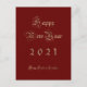 Happy New Year 2021 Elegant Red and Gold Script Holiday Postcard