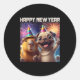 Happy New Year 2026 Capybara Pug Party Art Classic Round Sticker