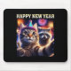 Happy New Year 2026 Cute Cat Raccoon Celebration Mouse Pad