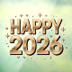 Stylish “Happy 2026” design featuring bold gold metallic 3D lettering surrounded by sparkling stars and hearts. A modern, elegant celebration artwork that radiates festive energy, joy, and positivity for the New Year 2026. Perfect for those who love luxury aesthetics, metallic typography, and cheerful holiday graphics.
