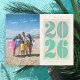 Send your New Year wishes in style with this modern 2026 photo postcard! Featuring large, decorative turquoise "2026" numbers on the right and space for a customisable photo on the left, this postcard is perfect for sharing a favourite beach vacation moment or any personal photo. A white handwritten-style "Happy New Year" greeting appears against a vibrant blue sky, while a casual message says: "See you in 2026 – Cheers, the Brown family." All text elements are fully customisable, making it ideal for families or couples sending relaxed, cheerful greetings — whether from a holiday trip or home.