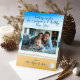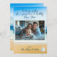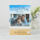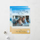 Happy New Year flat cards with one photo over a beach scene background. Sample message is, "Sending wishes for a prosperous and healthy new year". Signature at the bottom is next to a little sand dollar.