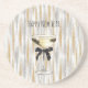 Happy New Year Black Bow Gold Silver Champagne Coaster