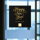 Elegant Custom New Year window cling for Businesses. Black background, golden text