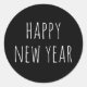 Happy New Year | Black Modern Minimalist Holiday Classic Round Sticker