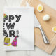 Happy New Year - Black Text with Party Hats Tea Towel