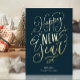 Happy New Year Blue Gold Script Modern Non Photo Real Foil Holiday Card. Send Holiday Greetings with photos to your loved ones with this festive and Modern Foil Holiday Card. All the texts are pre-arranged for you to personalise easily and quickly with your own details. Happy Holidays!