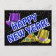 HAPPY NEW YEAR! Blue Text w/Party Hats Holiday Postcard