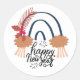 Cute boho Happy New Year script watercolor rainbow made up with boho coloured pine, clouds, etc Perfect for all your holiday mailings and decorating.