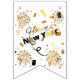 This bunting banner displays the words "Happy New Year" in a unique/bold print font with black & gold letters plus fireworks, confetti shapes and patterns in this New Years theme and style. All banners have single sided printing outdoor safe made with sturdy plastic polystyrene and thick plastic rope has (16) 5.5" x 8" swallowtail flags on a 6' long string.