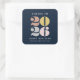 A modern elegant sticker for your New Year's mailings. The simple design features Cheers to 2023 in a palette of blush, gold and silver on a dark navy blue background. Personalise with your family name.