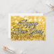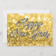 Happy New Year in elegant white typography over gold glitter. A chic sparkle holiday card for a company to send out with their custom business message inside for New Years Eve.
