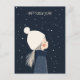 This is a very cute new year postcard that has illustration of a kid wearing a blue jacket of wearing winter clothing and beanie with snowflakes. You can customise the message.
