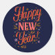 A vibrant, animated greeting design featuring the text 'Happy New Year!' in bold, festive typography. The letters shimmer and sparkle against a deep navy background, with animated snowflakes and festive elements gently falling around them. The camera slowly zooms in, creating an inviting and celebratory atmosphere, enhanced by warm golden lighting that adds a touch of magic to the scene. The overall mood is joyful and festive, perfect for ringing in the New Year.