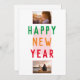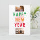 Happy New Year Colourful Modern 2 Photos Card. Modern green, red and orange typography. Customise the message and the names on the backside.