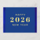 Happy New Year holiday postcard featuring blue colours with gold text. Great for those looking for holiday postcards to celebrate the new year. Nice blue colours. Custom text on the front and back of the card. Use the template to create your own custom Happy New Year holiday postcard.
