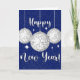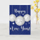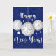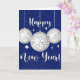 Funky disco balls with the words Happy New Year on a dark blue background. The inside reads, Wishing you all the best in the coming Year.