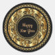 Happy New Year, elegant black and gold, Classic Round Sticker