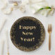 Happy New Year Elegant Gold Glitter and Black Paper Plate